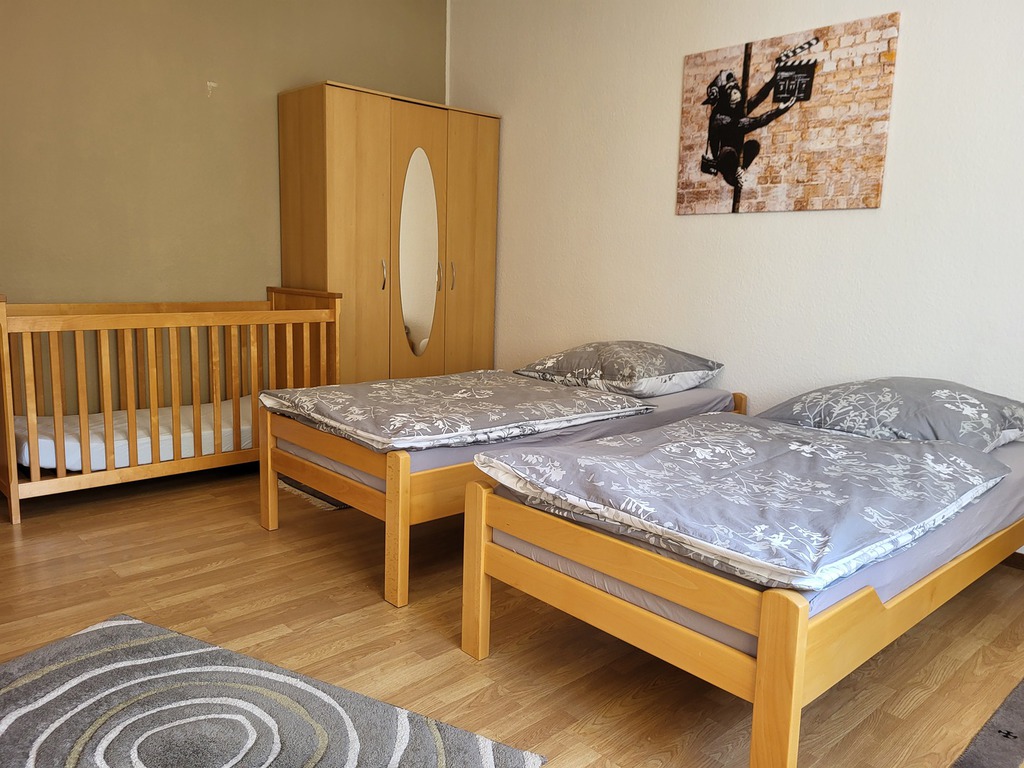 Die Ferienwohnung Nr. 1 liegt im Erdgeschoss und ist insgesamt 75 m² groß. Sie bietet Platz für 4 Personen und einem Baby.