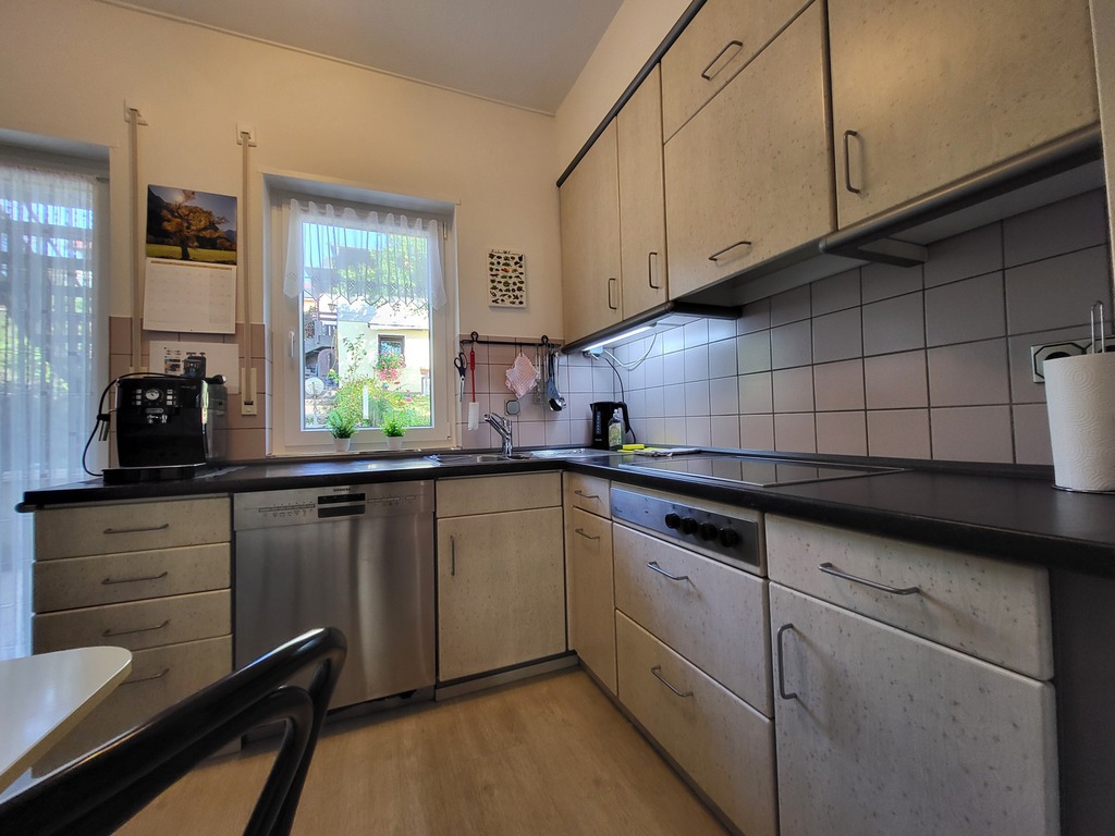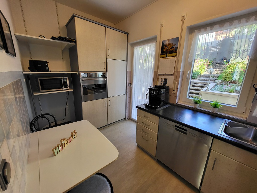 Die Küche ist komplett ausgestattet (Spülmaschine, Kühlschrank, Cerankochfeld, Backofen, Mikrowelle, Kaffeevollautomat, Wasserkocher, Toaster, Eierkocher, etc.). Geschirrtücher werden ebenfalls von uns bereitgestellt.