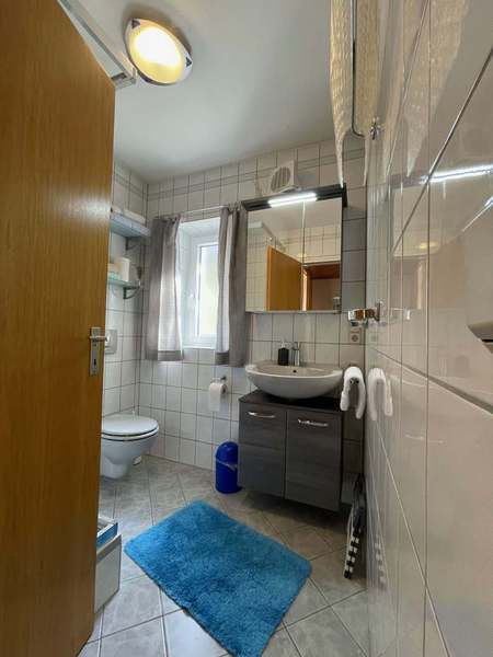 Ferner verfügt die Wohnung über ein eigenes Bad mit Dusche und WC sowie einem separaten WC. Handtücher, Babybadewanne, Wickelauflage und Fön sind auch vorhanden.